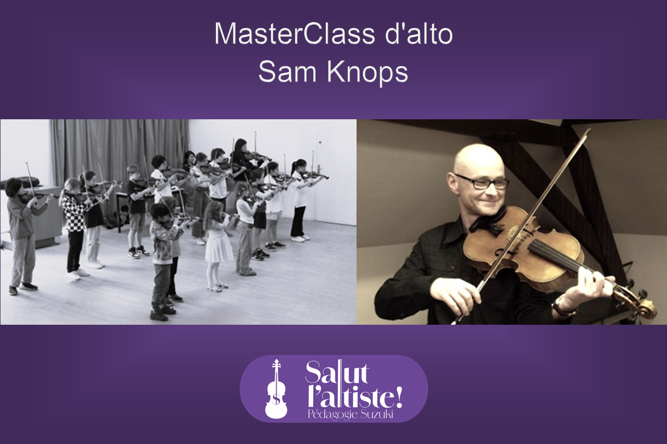 Masterclass d’alto avec Sam Knops. Ouvert à tous les altistes Suzuki et aux observateurs : professeurs en formation, professeurs d’alto non Suzuki ou toute autre personne curieuse de la pédagogie Suzuki et/ou de l’alto.